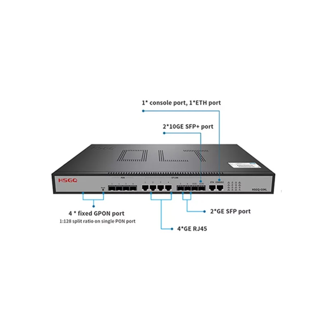 GG04L provides 4 * downlink GPON port, 4*GE RJ45, 2 *GE SFP port and 2* 10G SFP+ port. The height is only 1U for easy installation and space saving. G004 is suitable for Broadcast three in one, video surveillance network, enterprise LAN, Internet of Things,etc.