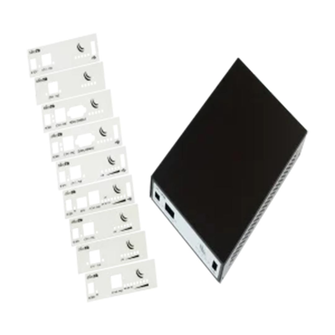 The CA411-711 is a premium black aluminium indoor case designed to accommodate a range of Mikrotik devices, including the RB411, RB911, RB912, and RB922 series. This flexible and durable enclosure comes with a set of interchangeable front panels, allowing you to customize the fit and appearance to match your specific device.