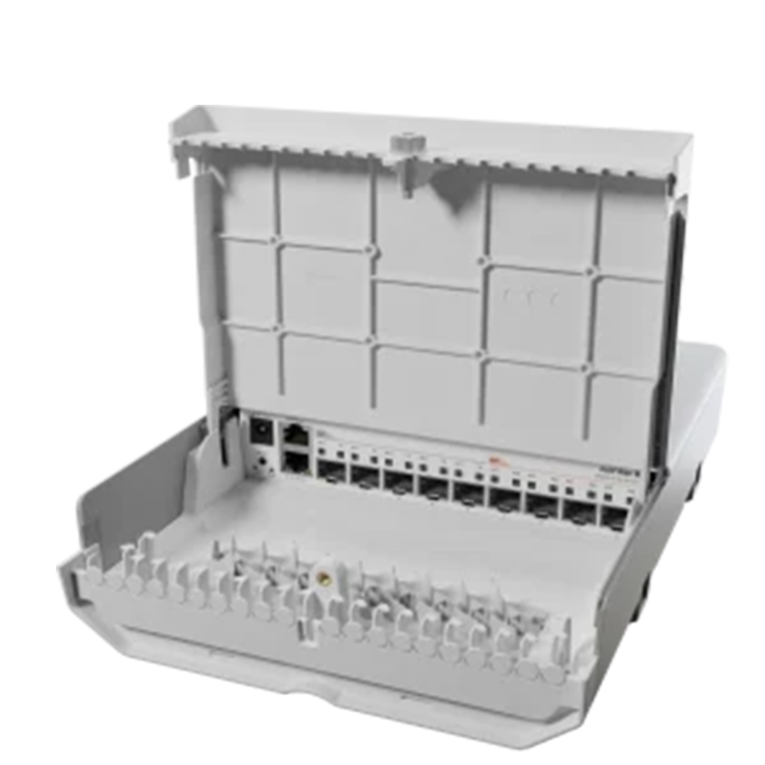 A remarkable outdoor switch for setting up an optical 10G network that can even perform some light routing. The spiritual successor to the beloved FiberBox. Gigabit Ethernet, SFP/SFP+, PoE